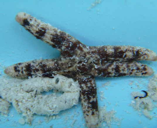 G. watsoni is a small, patterned sea star that grows approximately up to six centimetres in arm span. The ornate seastar’s arm is banded and spotted with shades of dark and light grey with a light grey central disk where the underside consists of a light, cream colour. Such colouration allows the seastar to effectively blend into certain cryptic environments.