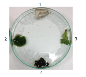 A total of six one hour trials were conducted to asses habitat structure preference of P. dendritica. Six large round petri dishes were numbered from 1 to 6, and four ‘habitat structures’ were arranged randomly, but evenly spaced, in each dish (see Photo (b): experimental set up). The empty spaces in between each habitat structure were used as controls. The habitat structures were obtained from coral rubble from the reef crest on Heron Island. The six slugs were also obtained from this area. Coral rubble was broken down into small pieces with a chisel and hammer until the necessary habitat structure was extracted from the rock.